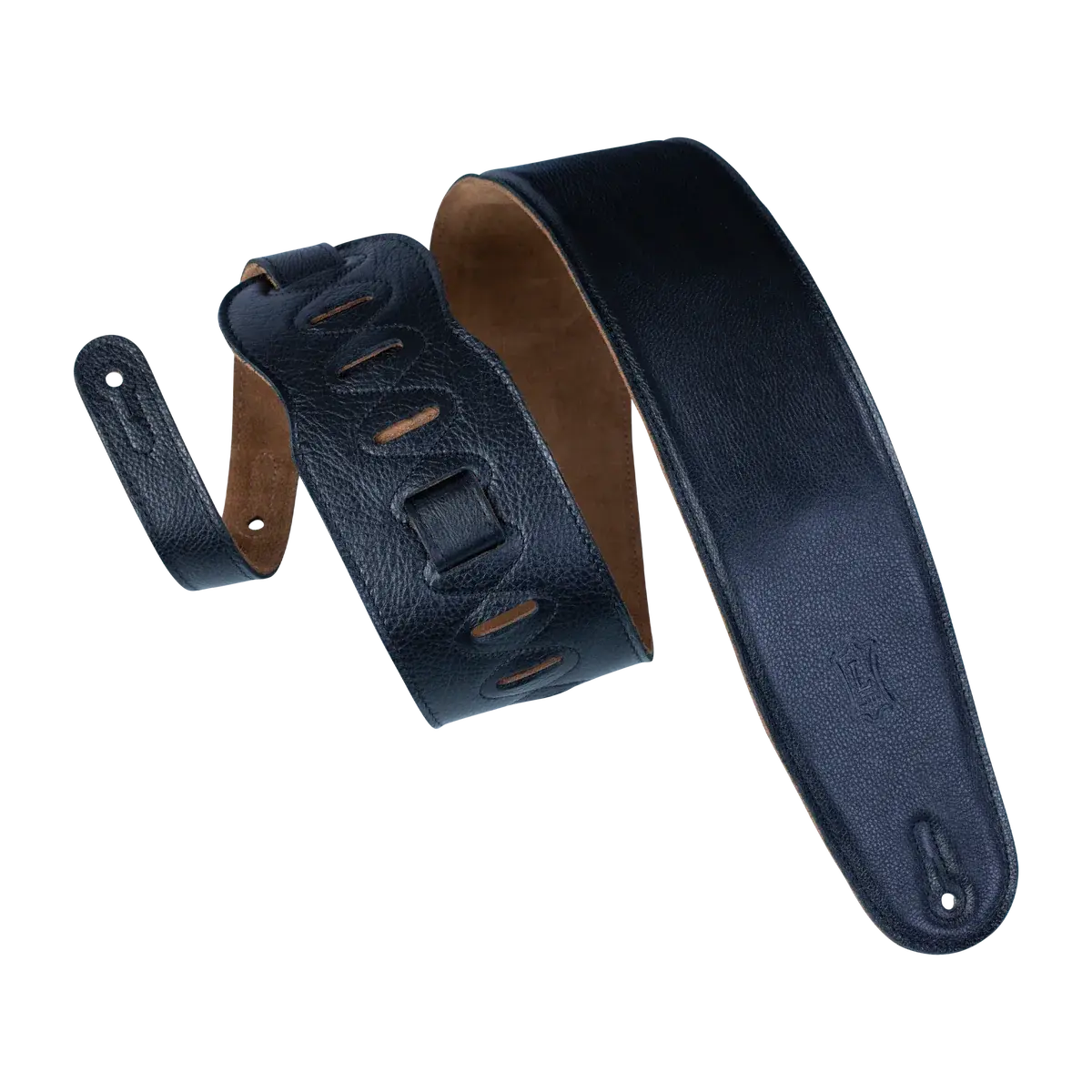 - Levy's 3 1/2" Wide Black Garment Leather Bass Guitar Strap With Natural Suede Back.