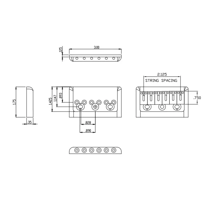 - String Spacing E-E = 2-1/8" (54 mm)